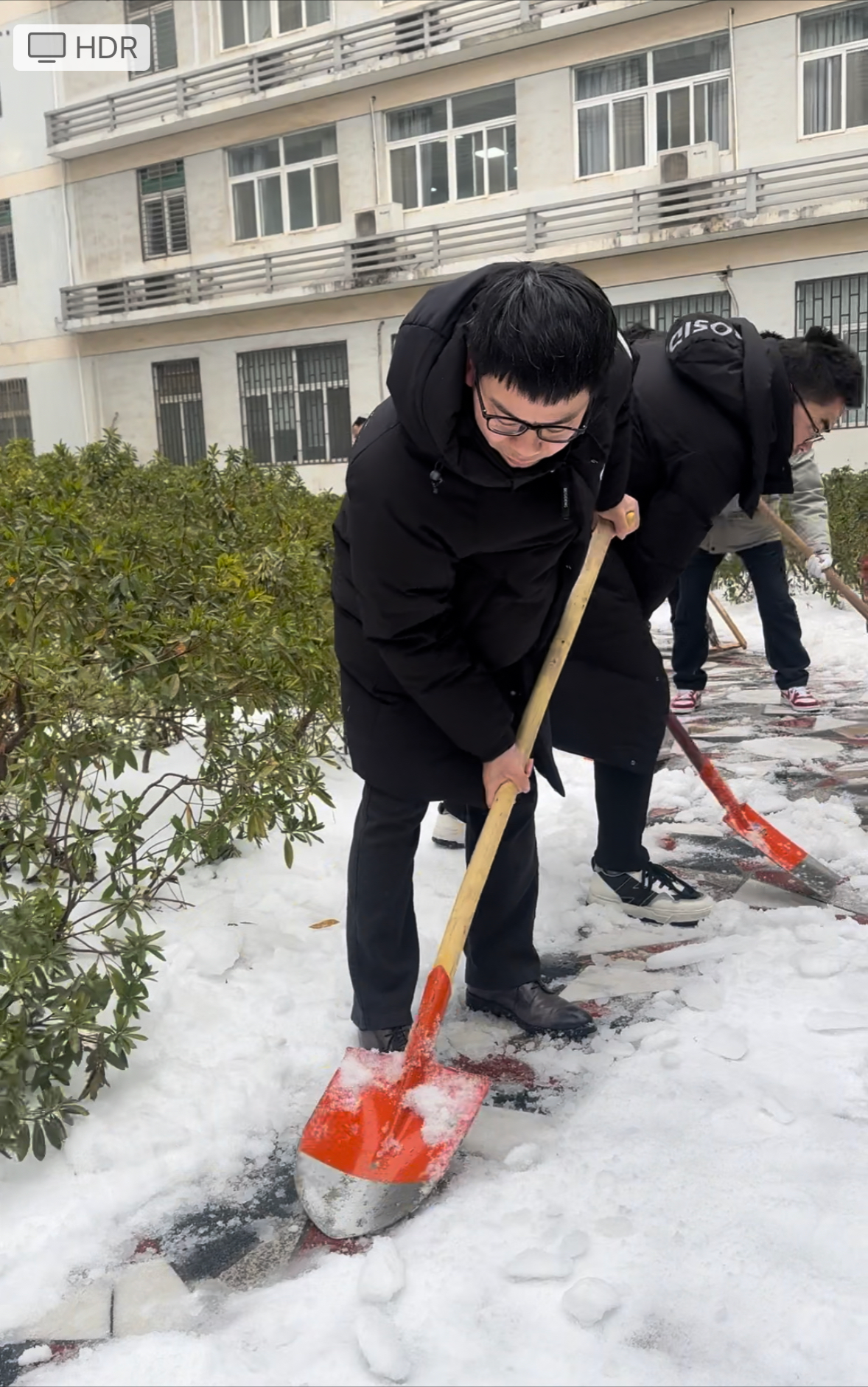 心中有光不畏严寒,信念如炬融化冰雪。学院师生全力清扫积雪结冰路面,合力打造出一条保障学子归来的平安之路。(通讯员:孙静)