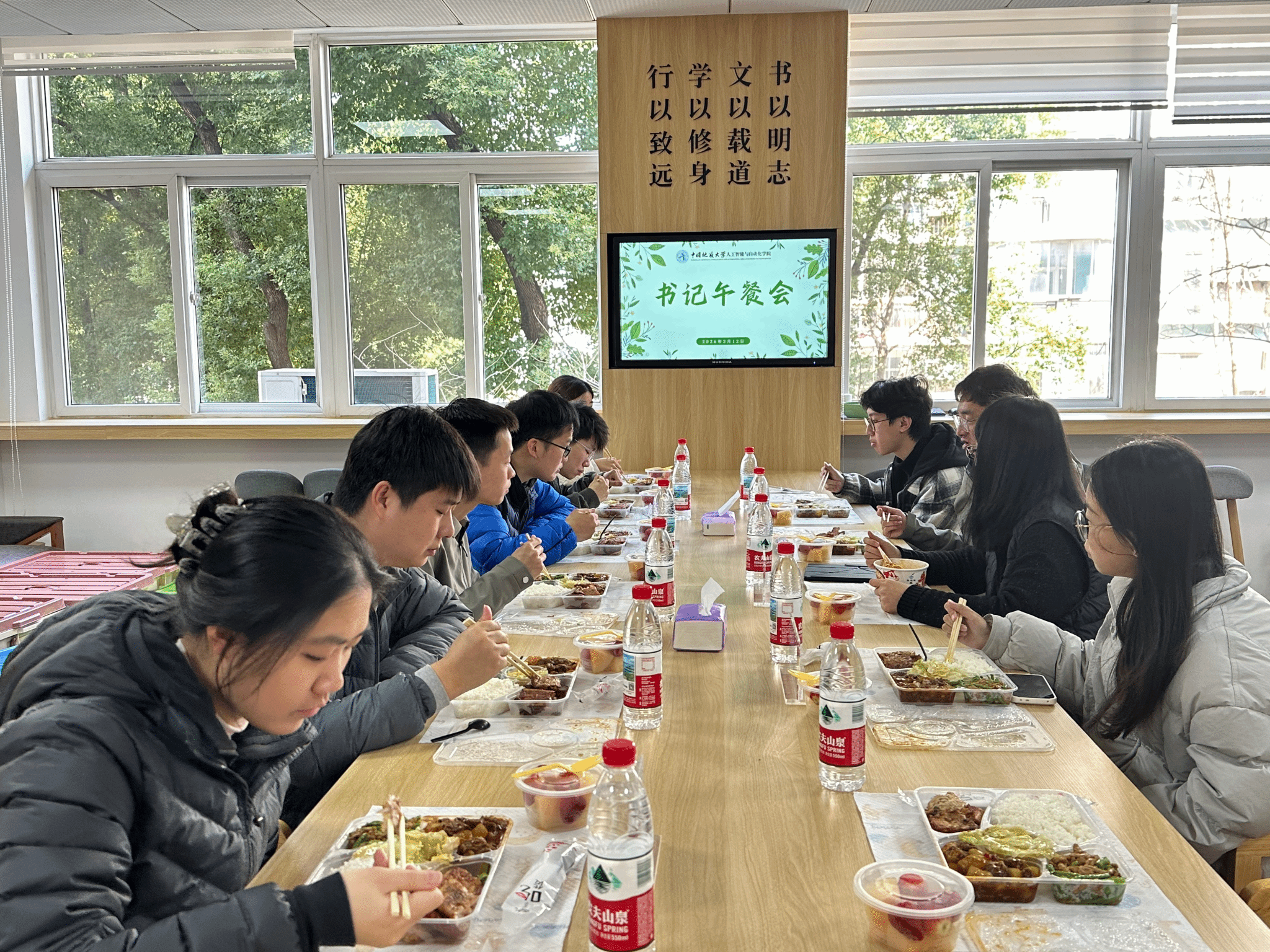 为深入了解学生的思想动态与生活困惑,畅通师生沟通渠道,3月12日中午,学院开展首期“书记午餐会”活动。学院党委书记朱荆萨、党委副书记杜育与8名本硕博支部书记代表和团学骨干代表共进午餐,围绕专业学习、支部建设等话题展开深入交流。