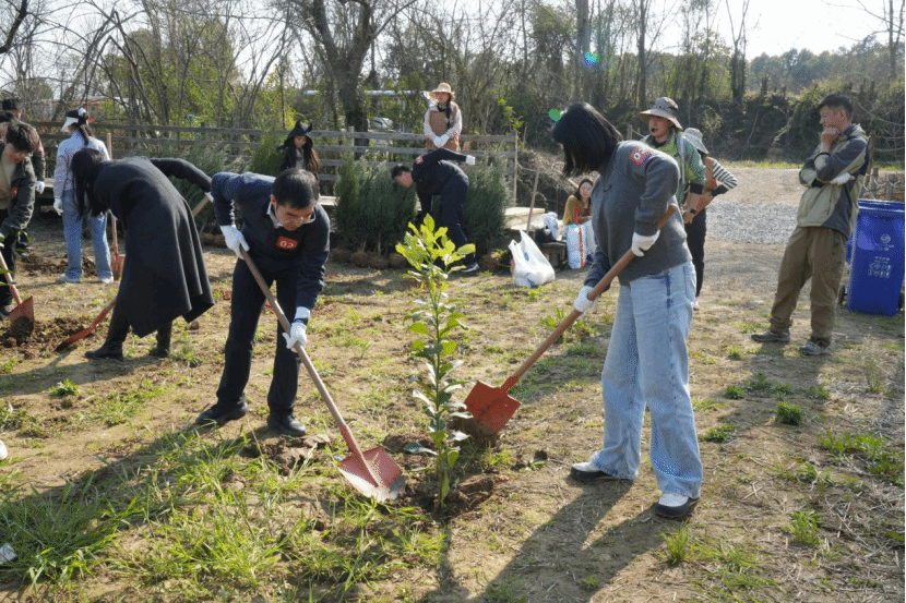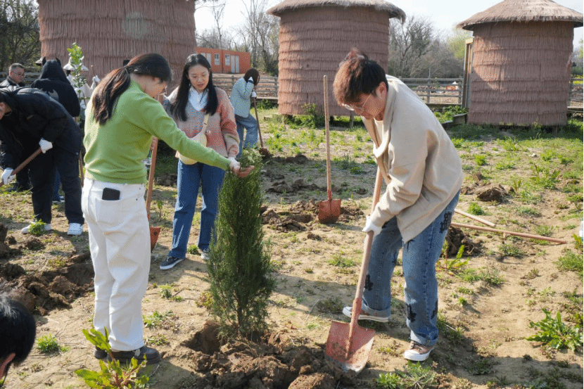 结对植树环节正式开始,青年职工与学院博士生一对一结对,组成特别的“植树搭子”。大家分工协作,挥锹铲土、扶苗培土,配合逐渐默契,话匣子也在一铲一锄间悄然打开。来自研发部门的工程师一边踩实新土,一边分享技术从实验室走向市场的难点痛点,博士生则结合自己的研究课题,畅谈前沿理论在产业中的应用可能。负责市场运营的职工好奇询问学术研究的逻辑框架,博士生也反过来了解企业如何将用户需求转化为产品迭代的方向。还有人聊起各自的工作节奏与研究周期,从科研压力聊到职业选择的考量,从跨领域协作的可能谈到未来技术人才的成长路径。